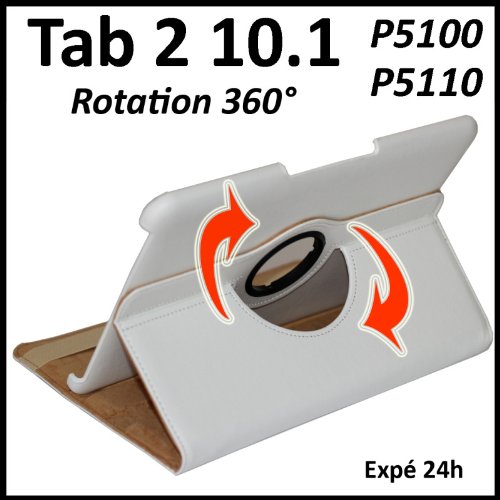 ebestStar - Pour (Tablette) Samsung Galaxy TAB 2 10.1 P5100 / P5110 - Housse Coque Etui en PU cuir de couleur BLANC, format rotatif, à ROTATION 360° (convertible en format livre / portefeuille / horizontal ou vertical). En cadeau : 1 film de protection d'écran transparent