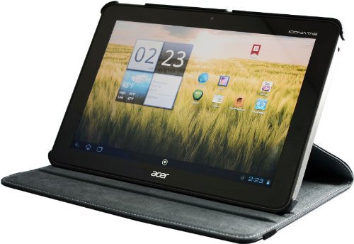Housse/étui en cuir-PU avec la fonction de 360 degrés de rotation pour 10,1 pouces Acer Iconia A200-noir