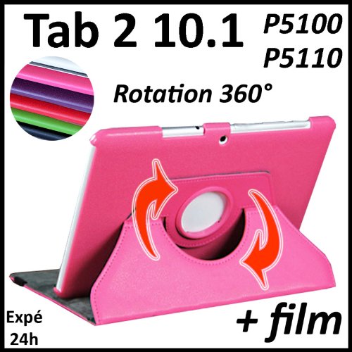 ebestStar - Pour (Tablette) Samsung Galaxy TAB 2 10.1 P5100 / P5110 - Housse Coque Etui en PU cuir de couleur ROSE (fuchsia), format rotatif, à ROTATION 360° (convertible en format livre / portefeuille / horizontal ou vertical). En cadeau : 1 film de protection d'écran transparent .